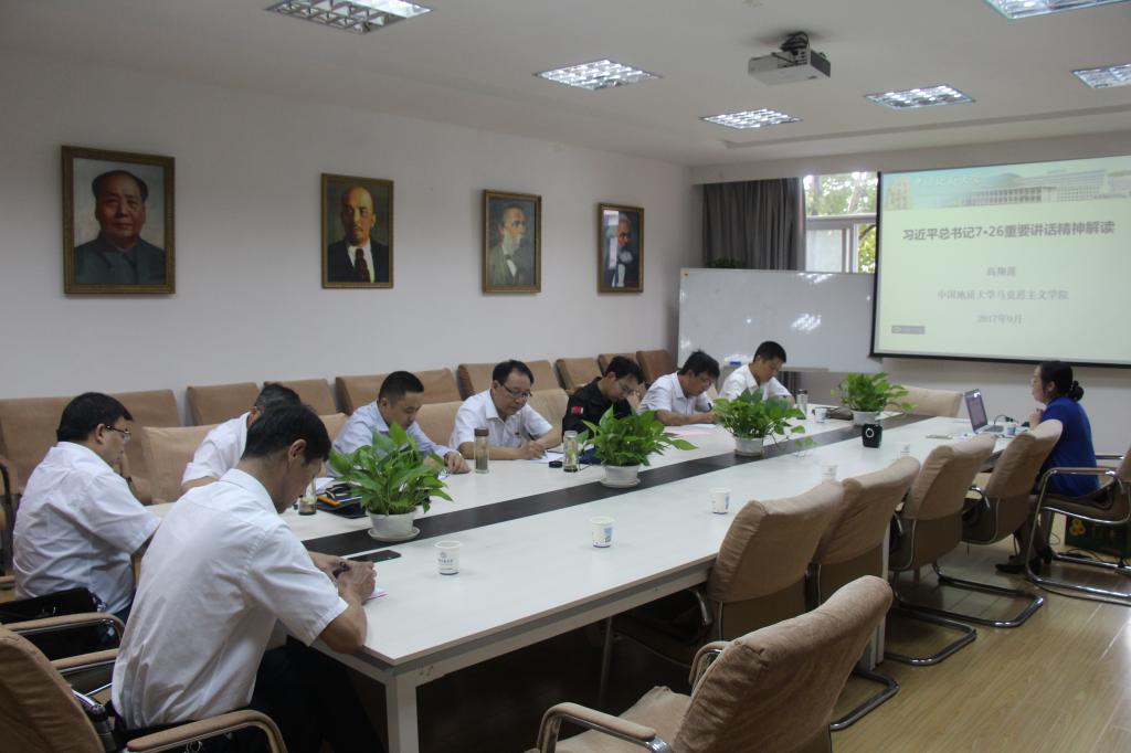 在培训班上,湖北省委讲师团主任刘爱国做了题为“中国特色社会主义与农村发展方向”的报告,把中国特色社会主义理论与我国农村实际紧密结合,具有极强的理论性、针对性,深受红山镇党政干部欢迎。365英国上市公司官网院长高翔莲做了“习近平总书记‘7.26’讲话精神解读”的讲座。学院全体研究生与红山镇党政干部一起聆听了讲座。会后,红山镇党委中心组一行参观了地大博物馆及校园。