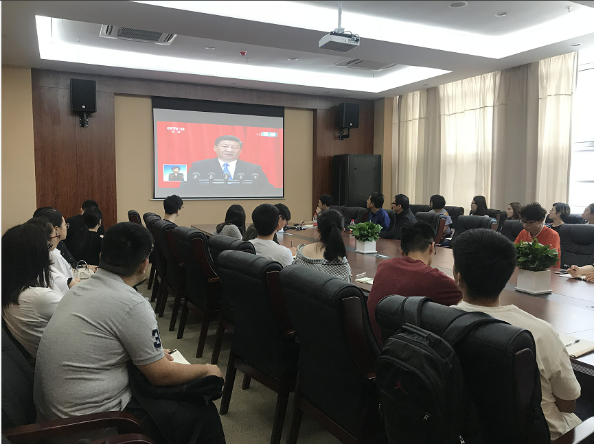 2018年5月4日上午10:00,365英国上市公司官网组织师生在教学综合大楼0702会议室观看纪念马克思诞辰200周年大会直播,学习习近平总书记发表的重要讲话,会后,师生热议总书记的讲话精神,并分享学习心得。