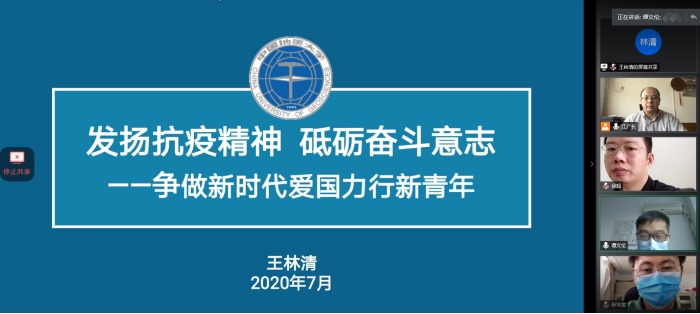 最后,结合本次抗击新冠疫情中,各学院涌现的志愿者事迹,王林清向同学们提出了三点希望。一是弘扬家国情怀,把爱国体现在扎扎实实的实践中,努力在为人民服务中茁壮成长,让青春在党和人民最需要的地方绽放绚丽之花。二是树立砥砺奋斗的精神,以“艰苦朴素、求真务实”校训精神为内核,发扬“严在地大”的优良学风,争做“品德高尚、基础厚实、专业精深、知行合一”的时代新人。三是着眼点滴行动,善于实践和躬行,脚踏实地投身于中国特色社会主义事业的伟大实践中,勇做新时代的弄潮儿,在实现中国梦的生动实践中放飞青春梦想。